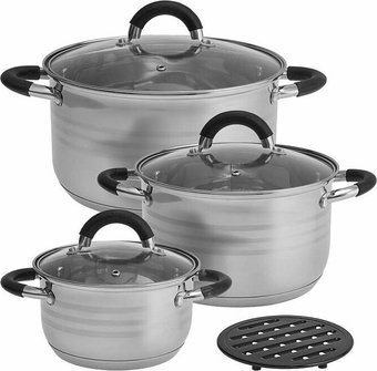| Состав набора | Состав набора кастрюль 3 кастрюли с крышками. Объемы кастрюль: 1. Кастрюля 1: 2,5 литра 2. Кастрюля 2: 3,5 литра 3. Кастрюля 3: 5,0 литров |