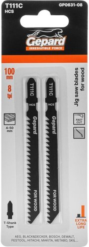 для лобзика, 2 шт, полотно высокоуглеродистая сталь (HCS), обрабатываемый материал дерево/ДСП/ДВП, вид распила прямой грубый рез, хвостовик T-образный, глубина реза 50 мм, рабочая длина 75 мм, шаг зубьев 3 мм/8 TPI