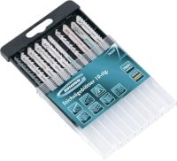 для лобзика, 10 шт, полотно хром-ванадиевая сталь (CrV), обрабатываемый материал дерево/металл, вид распила быстрый рез/чистый рез, хвостовик T-образный