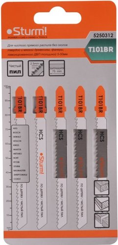 для лобзика, 5 шт, обрабатываемый материал ДСП/ДВП/ламинат/пластмасса, вид распила прямой тонкий рез, хвостовик T-образный