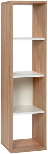 напольная установка, открытая, 4 полки, материал: ЛДСП, стиль: минимализм, цвет: бежевый/белый/дерево светлое, длина 38 см, высота 147 см, глубина 34 см
