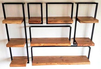 навесная установка, открытая, 9 полок, материал: ЛДСП/металл, стиль: лофт, цвет: бежевый/коричневый/черный