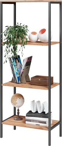 напольная установка, открытая, 3 полки, материал: ЛДСП/металл, стиль: лофт, цвет: дерево средних тонов/черный, длина 60 см, высота 150 см, глубина 34 см
