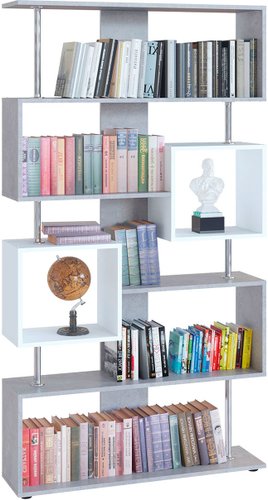 напольная установка, открытая, 7 полок, материал: ЛДСП, стиль: современный, цвет: белый/серый, длина 99 см, высота 181 см, глубина 27 см