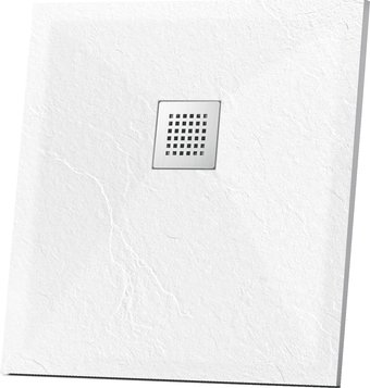 квадратный, 80x80 см, искусственный камень, низкий, 2.5 см, противоскользящее покрытие дна, цвет: белый