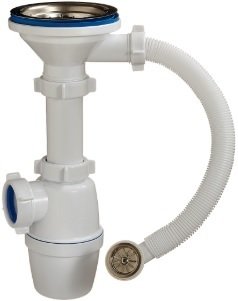 для мойки, бутылочный, полипропилен, резьба 1 1/2", труба 40 мм, гидрозатвор, сливная решетка, цвет крышки: нержавеющая сталь