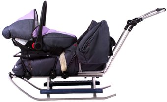 Описание Удобные и очень прочные металлические санки со спинкой и защитным козырьком, с возможностью установки люльки или автокресла, с усиленными подножками. | |