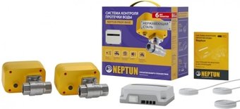 | Комплектация | • Модуль управления Neptun Base - 1 шт • Датчик Нептун SW 005 - 3 шт • Кран шаровый из нержавеющей стали с электроприводом Neptun Profi 220В - 2 шт |