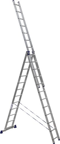 Оставшиеся две секции связаны между собой и могут использоваться как стремянка или приставная лестница. Высота стремянки из трёх секций 2,51 м. Высота приставной лестницы из трёх секций 3,36 м. Производитель так же предупреждает, что максимальная нагрузка на лестницу составляет 150 кг. Все торцы секций закрыты заглушками из прочного пластика. Первая секция снабжена надежной опорой в виде траверсы которая опирается на башмаки из прочного пластика с прорезиненным профилем. Нижние заглушки второй и третьей секции так же имеют прорезиненный профиль. Между собой секции надёжно удерживаются фиксаторами в виде крюков.