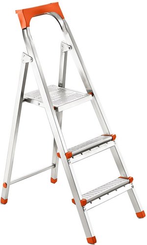 Очень лёгкая и удобная, при первом использовании отвалились 2 пластмассовые декоративные накладки на ступени . Когда стою на ней она вся трещит кажется вот вот ступеньки отвалятся, но пока держит я уже к этому привык по началу было страшновато (мой вес 83 кг). Подойдёт худым людям, не осматривал её на предмет качества сварки наличия ржавчины мне внешний вид не важен главное чтобы меня держала. Вещь не для каждодневного использования, Чуть не забыл после 4 использования её повело на выровненом у уровень полу она ровно не стоит и это с учё том того что я её использую лампочку в светильнике поменять, гвоздь под картину забить, всё на ровных поверхностях, я представляю чб с ней стало и как бы увеличились мои шансы попасть в контрапункт если бы я захотел с её помощью яблоки в саду с дерева собрать)00