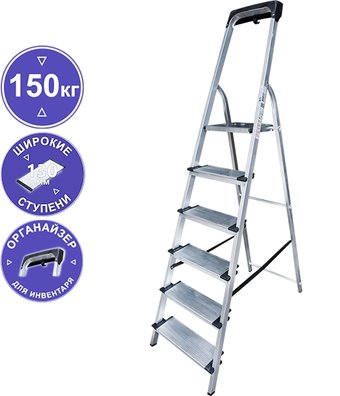 лестница-стремянка, 6 ступеней, алюминий, верхняя площадка
