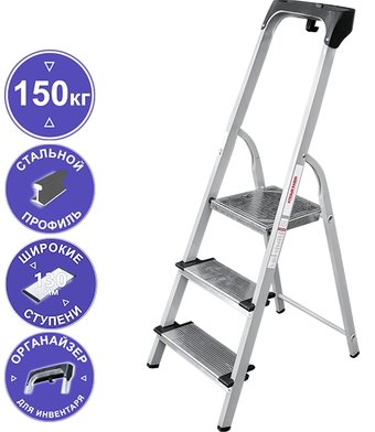 Описание - Каждая ступень — рабочая площадка глубиной 130 мм. Меньше усталости при длительной работе. | |