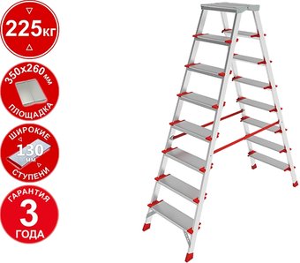 лестница-стремянка, 8 ступеней, алюминий, верхняя площадка