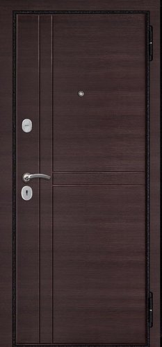 металл: 1.2 мм, открытые петли 2 шт., два замка (цилиндровый + сувальдный), отделка: МДФ плёночный (снаружи), МДФ плёночный (внутри)
