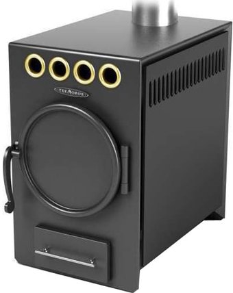 8 кВт, обогрев 120 м³, КПД 80%, корпус: сталь/чугун, топка: сталь