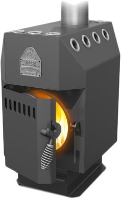 Описание Модификация печи, отличающаяся наличием стальной дверцы, стального колосника и имеющая выход дымовой трубы вверх. | |
