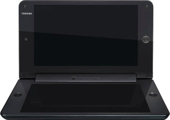 Описание Libretto W100 - пилотная раскладная модель с двумя сенсорными экранами, выпущенная Toshiba ограниченной партией. По сути является гибридом ноутбука и планшета, поскольку при вертикальной ориентации принимает вид книги, а при горизонтальной - ноутбука (нижний экран выводит виртуальную клавиатуру). Построен на платформе Intel Calpella ULV и снабжен SSD-диском небольшого объема. | |