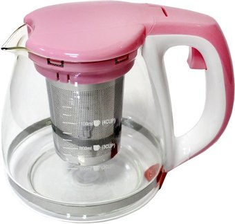 заварочный чайник, материал: стекло, 1000 мл, цвет: прозрачный/розовый