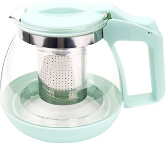 заварочный чайник, материал: нержавеющая сталь/пластик/стекло, 1100 мл, цвет: мятный/прозрачный