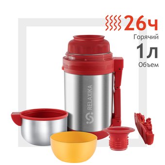 термос, 1 л, до 26 ч, колба: сталь, корпус: сталь, цвет нержавеющая сталь