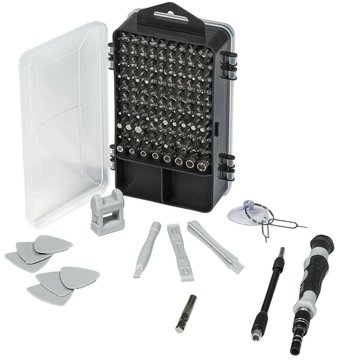 | Комплектация | - Отвертка-держатель для бит (1 шт) - Гибкий вал (1 шт) - Держатель для бит (1 шт) - Лопатка (3 шт) - Ключ для SIM карты (2 шт) - Магнит (1 шт) - Присоска (1 шт) - Медиатор (6 шт) - Биты 25 мм (98 шт) - Удлинитель для бит (1 шт) - Кейс (1 шт) |