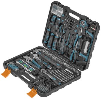 | Комплектация | Отвертка (8 шт) Биты (50 шт) Торцевые головки (22 шт) Ключ комбинированный (6 шт) Ключ имбусовый (9 шт) Изолента (1 шт) Ножницы (1 шт) Нож (1 шт) Адаптер (1 шт) Держатель для бит (1 шт) Длинногубцы 160мм (1 шт) Плоскогубцы 160мм (1 шт) Ключ трубный (1 шт) Ключ разводной (1 шт) Молоток (1 шт) Нож (1 шт) Лезвие для ножа (10 шт) Ножовка (1 шт) Пилка (2 шт) Хомут (10 шт) Рулетка (1 шт) Зажим ручной (2 шт) Линейка измерительная (1 шт) Набор крепежа (70 шт) Рукоятка с трещеткой квадрат 3/8 (1 шт) Отвертка храповая (1 шт) Уровень пузырьковый (1 шт) Удлинитель 3/8 75 мм (1 шт) Удлинитель 1/4":50 мм (1 шт) Головка торцевая удлиненная 3/8" (1 шт) Приспособление для зачистки проводов (1 шт) |
