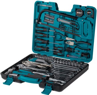 | Комплектация | BTK - 86 Изолента 5 м - 1 шт Рулетка 5 м - 1 шт Ножовка по металлу с полотном из быстрорежущей стали 300 мм - 1 шт Бита 25 мм 20 шт. CRV (SL3-4-5-6-PH0-1-2-3-PZ0-1-2-3-T10-15-20-25-H3-4-5-6) Нож с лезвиями - 1 шт Напильник полукруглый 140 мм - 1 шт Напильник треугольный 140 мм - 1 шт Отвертка-держатель для бит 190 мм CRV - 1 шт Отвертка-держатель для головок 190 мм CRV - 1 шт Отвертка 6*100 (PH2) CRV 1 шт Отвертка 6*100 (SL) CRV 1 шт Отвертка 3*75 (PH0) CRV 1 шт Отвертка 3*75 (SL) CRV 1 шт Отвертка 6*38 (PH2) CRV 1 шт Отвертка 6*38 (SL) CRV 1 шт Длинногубцы 160 мм 1 шт Плоскогубцы 180 мм 1 шт Тестер 1 шт Пинцет 110 мм - 1 шт Головки 1/4' CRV 11 шт 4-4.5-5-5.5-6-7-8-9-10-11-12 мм Головки 1/2' CRV 10 шт 10-11-12-13-14-15-17-19-22-24 мм Ключ имбусовый 9 шт. размер 1,5; 2; 2,5; 3; 4; 5; 6; 8; 10 мм Пинцы 250 мм - 1 шт Ключ разводной 250 мм - 1 шт Рукоятка с трещеткой квадрат 1/2' CRV 1 шт Рукоятка с трещеткой квадрат 1/4' CRV 1 шт Молоток шаровый 1 шт Ключ гаечный комбинированный CRV 10 шт. размер 6-8-10-11-12-13-14-17-19-22 мм Удлинитель квадрат 1/2' - 1 шт Головка свечная 16 мм - 1 шт Кейс |