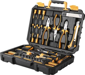 | Комплектация | - 5 шт. прецизионные отвертки - 1 шт. комбинированные клещи - 1 шт. плоскогубцы с длинным носом - 1 шт. бокорезы - 1 шт. строительный нож - 10 шт. лезвия для ножа - 1 шт. измерительная лента - 1 шт. разводной ключ - 7 шт. шестигранные ключи - 1 шт. держатель для бит - 2 шт. отвертки - 9 шт. головки торцовые - 42 шт. биты |