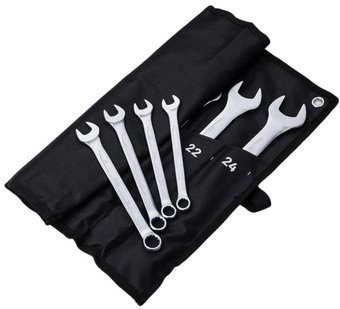 Описание Комбинированный гаечный ключ - это универсальный инструмент, который сочетает в себе две функции: обычного гаечного ключа и накидного. Он предназначен для крепления и откручивания гаек и болтов различного диаметра в различных областях, таких как автомобильный ремонт, строительство и механические работы. | |