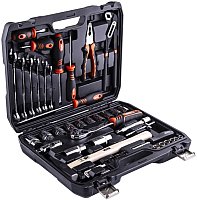 | Комплектация | - Головки торцевые 1/4'' 6 граней: 8, 9, 10, 11, 12, 13 мм - Отвертка - держатель 1/4'' 150 мм - Адаптер для бит 1/4''DR x 1/4''НDR - Биты: L = 25 мм PH1, PH2, PH3, SL3, SL4, SL5, SL6, Т10, Т15, Т20, Т25, Т27, Т30, Т40 - Вороток Т - образный 1/4'' 115 мм - Головки торцевые 1/2'' 6 граней: 10, 12, 13, 14, 15, 17, 19, 22, 24, 27 мм - Свечные головки 1/2'': 16, 21 мм - Трещотка 1/2'' 72 зуба - Удлинитель 1/2'' 125 мм - Кардан 1/2'' 70 мм - Ключи шестигранные Г-образные: 1.5, 2, 3, 4 мм - Ключи комбинированные : 10, 12, 13, 14, 15, 17 мм - Молоток 300 г - Плоскогубцы комбинированные 175 мм - Переставные клещи 250 мм - Отвертки: PH2 x 38 мм, PH2 x 100 мм, PZ3 x 200 мм, SL6 x 38 мм, SL6 x 100 мм |