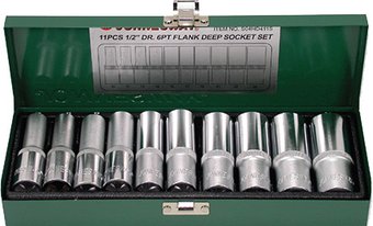 | Торцевые головки 1/2" | 10 предмет(ов) (10, 11, 13, 14, 15, 17, 19, 21, 22, 24 мм) |