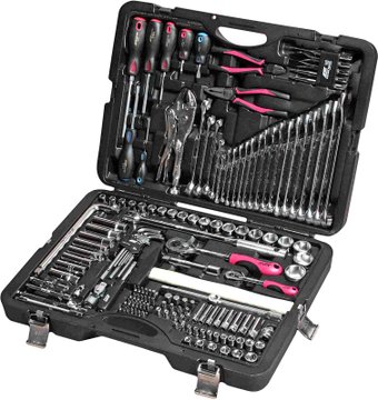 Описание Набор инструментов 156 предметов слесарно-монтажный 1/4",1/2" 6 граней. | |