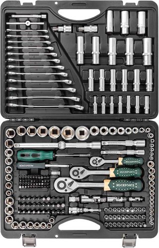 | Комплектация | Инструменты в наборе трещотка (3 шт.), отвертка (1 шт.), ключ гаечный (22 шт.) Трещотка 1/2″, 3/8″, 1/4″ Отвертки отвертка под биты (1 шт.) Доп. комплектация рукоятка (1 шт.), кейс Оснастка Оснастка головки (102), насадки-биты (74 шт.), удлинители (5 шт.), кардан (3 шт.), держатель (1 шт.), адаптер (1 шт.) Головки торцевые (37 шт.), глубокие торцевые (18 шт.), торцевые Е-тип (14 шт.), свечные (3 шт.), головки со вставкой (30 шт.) Торцевые головки 1/2″ (10, 12–15, 17, 19, 20, 21, 22, 24, 27, 30, 32 мм), 3/8″ (10, 11, 12, 13, 14, 15, 16, 17, 18, 19 мм), 1/4″ (4, 4.5, 5, 5.5, 6, 7, 8, 9, 10, 11, 12, 13, 14 мм) Глубокие торцевые головки 1/2″ (16, 17, 18, 19, 22 мм), 3/8″ (10, 11, 12, 13, 14, 15 мм), 1/4″ (4, 5, 6, 7, 8, 9, 10 мм ) Торцевые головки E-тип 1/2″ (Е20, Е22, Е24), 3/8″ (Е10, Е11, Е12, Е13, Е14, Е15), 1/4″ (Е4, Е5, Е6, Е7, Е8) Головки со вставкой шлицевые (SL) (SL6, SL6.5, SL8), крестовые (PH) (РН2, РН3), крестовые с насечками (PZ) (PZ2, PZ3), шестигранные (Hex) (Н3, Н4, Н5, Н6, Н7, Н8), звездочкой (Torx) (Т25, Т27, Т30, Т35, Т40, Т45, Т50), звездочкой с отверстием (Torx) (ТТ27, ТТ30, ТТ35, ТТ40, ТТ45, ТТ50), 12-гранные Spline (5, 6, 8, 10 мм) Насадки-биты шлицевые (SL) (SL4, SL5.5, SL6, SL6.5, SL7, SL8), крестовые (PH) (РН0, РН1, РН2, РН3, РН4), крестовые с насечками (PZ) (PZ0, PZ1, PZ2, PZ3, PZ4), шестигранные (Hex) (Н2, Н2.5, Н3, Н4, Н5, Н5.5, Н6, Н6.5, Н7, Н8, Н10), звездочкой (Torx) (Т8, Т9, Т10, Т15, Т20, Т25, Т27, Т30, Т35, Т40, Т45, Т50), звездочкой с отверстием (Torx) (Т8, Т9, Т10, Т15, Т20, Т25, Т27, Т30, Т32, Т35, Т40, Т45, Т50), 12-гранные Spline (4, 5, 6, 8, 10, 12 мм), квадратные (Square Head) (1, 2, 3 мм) Удлинители 1/2″ (125, 250 мм), 3/8″ (125 мм), 1/4″ (50, 100 мм) Кардан 1/2″, 3/8″, 1/4″ Ключи Ключи вороток (1 шт.), комбинированный (12 шт.), угловой шестигранный (7 шт.), звездочкой (Torx) (2 шт.) Воротки T-образный (1 шт.) Размер ключа 8 мм, 10 мм, 11 мм, 12 мм, 13 мм, 14 мм, 15 мм, 17 мм, 16 мм, 18 мм, 19 мм, 1.27 мм, 1.5 мм, 2 мм, 2.5 мм, 3 мм, 4 мм, 5 мм, 9 мм |