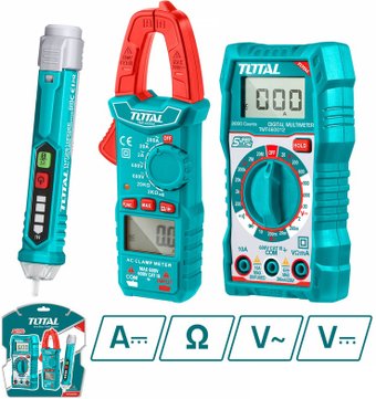 | Комплектация | Токовые клещи, детектор напряжения переменного тока, цифровой мультиметр, комплект щупов для мультиметра, 6 батареек, ААА, 1,5В |