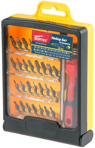 | Комплектация | Биты: - T4, T5, T6, T7, T8, T9, T10, T15, T20, H1.5, H2, H3, H4, SL1.5, SL2, SL2.5, SL3, SL3.5, SL4, U2.6, Y3, Star3, PH1, PH2, PH0, PH00, PH000. Магнитный держатель бит; Пинцет. |