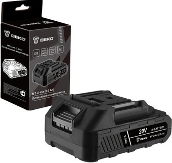 Li-ion, для строительного инструмента, совместим с Deko, 20 В, 2 А·ч, с индикатором заряда, 1 аккумулятор в наборе, 350 г