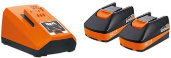 Li-ion, для строительного инструмента, совместим с Fein, 18 В, 3 А·ч, с индикатором заряда, 2 аккумулятора в наборе, напряжение зарядного устройства: 12-18 В