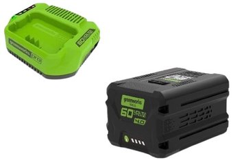Li-ion, для садового инструмента, совместим с Greenworks, 60 В, 4 А·ч, с индикатором заряда, 1 аккумулятор в наборе, напряжение зарядного устройства: 60 В