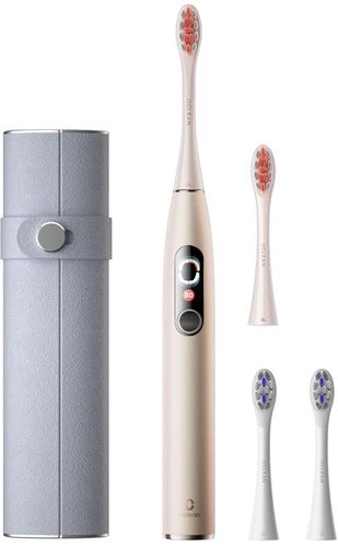 зубная щетка, питание от аккумулятора, движение головки: пульсация, дисплей, поддержка мобильного приложения, в комплекте: футляр, подставка-зарядная база, USB-кабель, количество насадок: 4