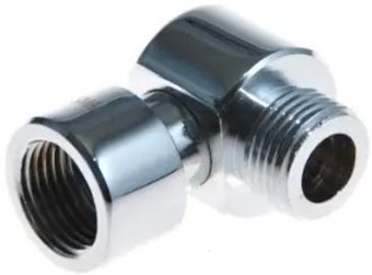 латунь, конструкция угловая, диаметр входа 3/4", диаметр выхода 1/2", хром