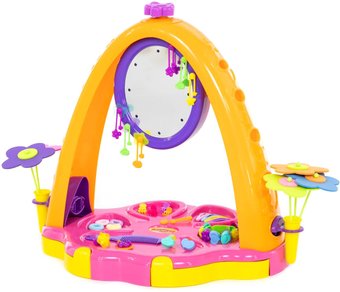 Описание Настольный игровой комплекс для девочек с украшениями и парикмахерскими принадлежностями. Комплекс оснащен зеркалом с подсветкой, двумя вазочками, двумя выдвижными полочками. С обратной стороны зеркала - фото-рамка для любимой фотографии маленькой красавицы. Вазочки заполняются сборными цветочками (5шт.). В набор украшений входят: браслет, клипсы, колечко и подвеска, которые малышка может собрать по своему вкусу и менять их цвет в зависимости от наряда. Деталями бижутерии можно украсить зеркальце, для этого в его рамке есть специальные отверстия. | |