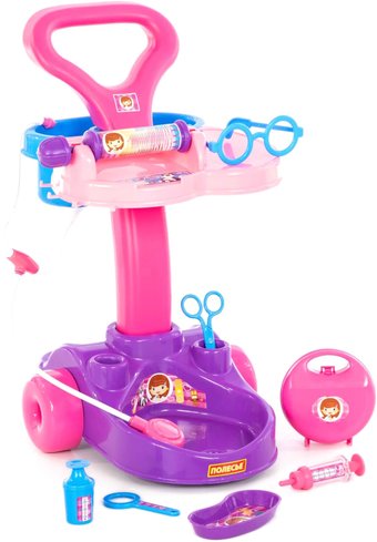 Описание Игровой набор «Доктор» включает в себя предметы, которые очень похожи на приспособления, имеющиеся в арсенале настоящих врачей. Среди них — стетоскоп, очки, шприц и множество других приборов. В наборе 9 элементов. Приборы можно перевозить на специальной тележке, которая отлично дополняет образ юного врача. | |