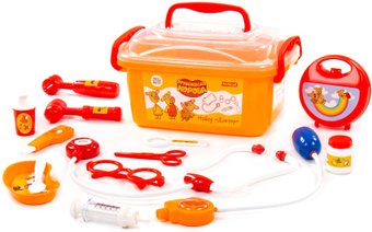 | Состав набора | ножницы (1), лупа (1), шприц (1), ложечка (1), стетоскоп (1), тонометр (1), отоскоп (1), молоточек (1), градусник (1), очки (1), аптечка (1), банка (2), лоток (1) |