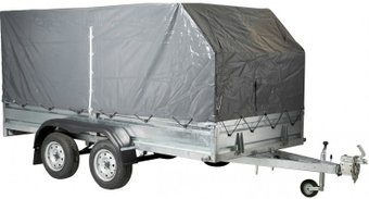 двухосный, полная масса 750 кг, рессорная подвеска, колеса R13, быстросъемный борт, комплектация тент, размеры платформы 350x151 см, борт 150 см