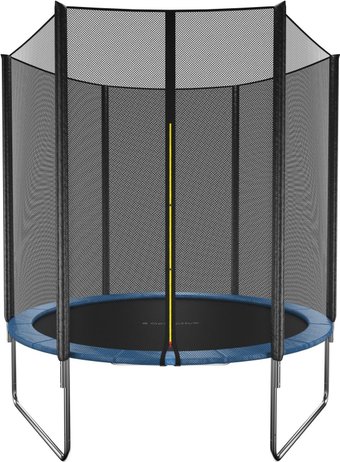 Описание Уличный батут синего цвета предназначен для взрослых и детей любого возраста. По периметру расположены прочные металлические стойки, на которые крепится защитная сетка. | |