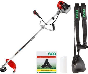 бензиновый, двухтактный, 1450 Вт, оснастка: леска+металлический нож, ширина скашивания: 25.5-43 см, легкий пуск, 7.6 кг