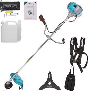 | Комплектация | - Триммер; - Ранцевый ремень; - Комплект для сборки; - Катушка; - Канистра для топливной смеси; - Трехлопастной нож; - Руководство по эксплуатации. |