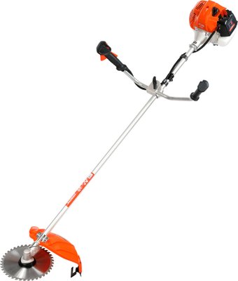 бензиновый, двухтактный, 2200 Вт, оснастка: леска+металлический нож+металлический диск, ширина скашивания: 25.5-42 см, легкий пуск, 7.7 кг