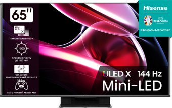 65" 3840x2160 (4K UHD), матрица IPS, частота матрицы 144 Гц, Smart TV (Vidaa), HDR10, HDR10+, Dolby Vision, Dolby Vision IQ, HLG, DTS:X, Dolby Atmos, AirPlay, Wi-Fi, смарт пульт