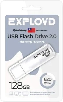 128 ГБ, USB 2.0 Type-A, с колпачком, пластик, цвет белый